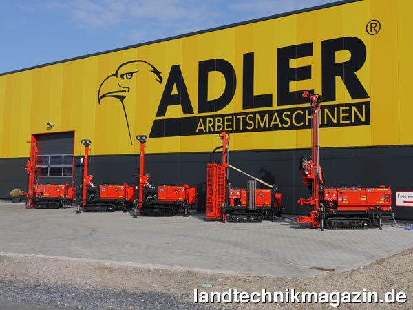 Die Stärke von Adler Arbeitsmaschinen ist nach eigener Aussage die stetige Weiterentwicklung der Maschinen im Dialog mit den Kunden. So können sich die rund 550.000 erwarteten Besucher auf nützliche Innovationen in den einzelnen Baureihen freuen. Die Bohrgeräte sind nun mit verstärkten Masten ausgestattet und erreichen eine erhöhte Rückzugskraft von bis zu 5 t. Spezielle Spülpumpen fördern das aufgebohrte Material nach oben und ermöglichen dadurch ein deutlich effektiveres Arbeiten. Sehr effektive ist das die Pumpe mit der Maschine zum Bohrpunkt fährt.