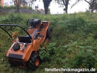 Dank tiefem Schwerpunkt, gefedertem Schalensitz, Agrarbereifung und Allradantrieb mit zuschaltbarer Differenzialsperre lässt sich der 940 Sherpa 4WD RC nach Herstellerangaben auch in steilem und unwegsamem Gelände komfortabel im Aufsitzbetrieb bedienen. Für derartige Einsätze ist ein hangtauglicher Motor mit Öl- und Benzinpumpe unerlässlich. Wird es aber allzu steil oder muss quer zum Hang gefahren werden, ist das Steuern per Fernbedienung eine willkommene Möglichkeit, wie Weber bestätigt: „Wer entlang von Böschungen, Straßengräben oder Bächen schon einmal länger schräg gefahren ist, weiß, dass es eine wirkliche Erleichterung bedeutet, hier absteigen zu können.“ Geeignet ist der 940 Sherpa 4WD RC laut AS-Motor im Aufsitzbetrieb bis 21 Grad und im ferngesteuerten Betrieb bis 39 Grad (Kippgrenze). Bei 33 Grad Querlage ertönt ein akustisches Signal, das den Anwender warnt, dass sich das Gerät dem Grenzbereich und der Kippgrenze nähert.