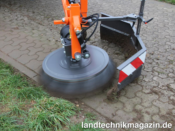 Die zapfwellengetriebene 50-cm-Wildkrautbürste ist laut Husqvarna besonders zum gründlichen Entfernen von Unkraut und Schmutz an Rinnen, Gehwegen, Bordsteinen und allen harten Oberflächen geeignet. Der Bürstenwinkel ist vom Fahrersitz aus dreidimensional einstellbar. Der Besenteller ist rechts und links stufenlos schwenkbar und stets im direkten Blickfeld des Fahrers. Zusammen mit der bewährten Husqvarna Hecklenkung des Riders wird nach Herstellerangaben eine herausragende Wendigkeit und hohe Flächenleistung erreicht. So können zum Beispiel enge Einsatzbereiche wie Baumschalen und enge Wegeradien in einem Zug – ohne Rangierarbeit – effektiv gereinigt werden. Die Drahtbürste ist standardmäßig mit einem Spritzschutz ausgestattet und kann in Kombination mit einem Heckgewicht und dem Hydrauliksatz für beide Husqvarna Profi-Rider P 525D (25 PS) und P 520D (20 PS) verwendet werden.