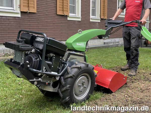 Rapid betont, dass durch die optimale Gewichtsverteilung, die sich durch den Maschinenaufbau ergibt, bequeme Wendemanöver beim Bodenfräsen-Einsatz möglich seien. Die ergonomisch angeordneten Bedienelemente lassen sich Rapid zufolge alle vom Holm aus während der Arbeit sicher und einfach bedienen, auch für ungeschulte Bedienpersonen. Dadurch habe die Bedienperson das Einachsgerät immer sicher in der Hand. Dank dem bewährten werkzeuglosen Wechselsystem seien verschiedene Anbaugeräte innerhalb weniger Augenblicken gewechselt. Auch könne wegen der bewährten Rapid-Schnellwechselschnittstelle und dem Anbaustutzen 52/54 mm auf ein breites Anbaugerätesortiment zurückgriffen werden.