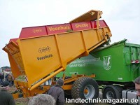 Veenhuis entwickelte den Shuttle Überladewagen, um die Effizienz von Futtermaisernte und -transport vom Acker zur Biogasanlage zu optimieren. Mit diesem Überladewagen lässt sich die Maissilage schnell in Lastkraftwagen überladen, so dass beträchtlich größere Mengen Maissilage schneller vom Acker zur Biogasanlage transportiert werden können. Dadurch wird der Transport der Maissilage über die Straße kostengünstiger. Der Shuttle Überladewagen kann unter anderem dank des hydraulisch angetriebenen doppelten Kratzbodens auf dem Acker schnell überladen, was Zeit und Geld spart. Der Wagen hat ein Fassungsvermögen von 26,5 m³ und ist mit einem hydraulischen Kippsystem ausgerüstet, so dass bis zu 4,5 Meter Höhe entladen werden kann. Der Überladewagen ist mit Alliance 800/60R32 I-390-Reifen ausgestattet, um den Bodendruck niedrig zu halten und Bodenbeschädigungen auf ein Mindestmaß zu beschränken. Der Shuttle Überladewagen lässt sich laut Veenhuis leicht bedienen, ist solide und wartungsfreundlich und weist darum niedrige Wartungskosten auf.