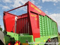 Der neue Strautmann Ladewagen Magnon CFS 430 verfügt über 42 m³ Ladevolumen, der Magnon CFS 470 über 46 m³ und der Magnon CFS 530 über 52 m². Neben der Erhöhung des Ladevolumens (Tera-Vitesse: 40, 44, 50 m³) ist das wahrscheinlich wichtigste Novum der Magnon die ungesteuerte 2,25-m-Flex-Load-Pickup, die mit Kunststoffzinken statt der üblichen Stahl-Federzinken ausgestattet ist – die höhere Flexibilität der Zinken verspricht eine bessere Bodenanpassung. Die Kunststoffzinken sind in sechs V-förmigen Reihen angeordnet und die Stahl-Abstreifer zwischen den Zinken montiert. Die tiefe Position der Abstreifer soll einerseits den Gutfluss optimieren und anderseits das Wickeln von Gras verhindern. Des Weiteren wird durch diese Positionierung Kontakt zwischen Zinken und Abstreifern verhindert, was die Laufruhe erhöht und den Zinkenverschleiß vermindert. Strautmann unterstreicht, dass, sollte trotzdem einmal ein Zinkenwechsel notwendig sein, dieser mit dem Lösen einer einzigen Schraube extrem einfach und in kürzester Zeit durchführbar sei.