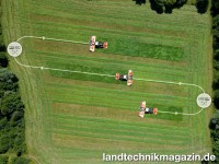 Sie übernimmt eigenständig das wiederholte Umschalten des Querfördersystems. Die automatische Schwadablage schwenkt die Querfördereinheiten automatisch in Abhängigkeit von der gewählten Fahrspur ein oder aus. So wird das Futter immer richtig abgelegt, Bedienungsfehler werden deutlich reduziert. Die Fahrenden werden entlastet, sie können sich vollständig auf die Maschine und ihr Umfeld konzentrieren.