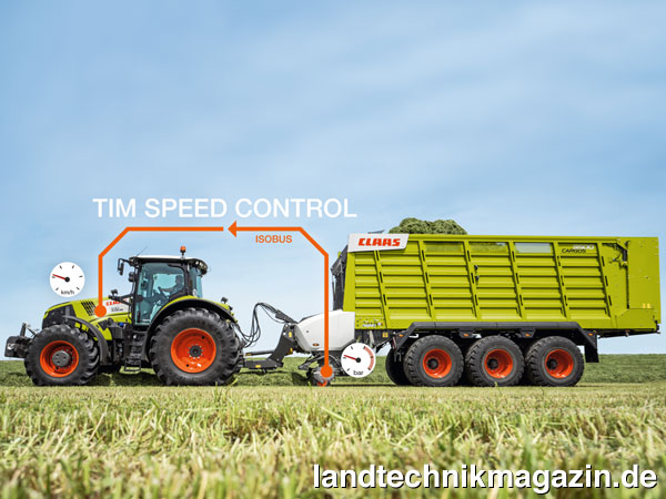 Bei den CARGOS 8000 und 9000 Ladewagen führt Claas die ISOBUS-Funktion TIM SPEED CONTROL ein. Damit können diese Silierwagen jetzt abhängig von ihrer aktuellen Auslastung die Vorfahrtgeschwindigkeit des Traktors regeln. Als weitere neue Ausstattungsoptionen für die Claas CARGOS 8000 und 9000 Ladewagen werden eine Laderaumabdeckung, ein Dosierwalzenmodul mit zwei Walzen sowie – für einen Teil der CARGOS Modelle – eine zusätzliche, breitere Bereifungs-Variante vorgestellt.