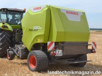 Die neue Claas ROLLANT 520 gibt es wahlweise mit Raffer, als ROTOFEED (RF) mit Zuführrotor oder in der Ausführung ROTOCUT (RC) mit Schneidwerk. Die Breite der gesteuerten Pick-up gibt Claas mit 1,85 m für das Raffer-Modell und 2,10 m für die Ausführungen mit Rotor an. Wahlweise kann die Pick-up mit einem Niederhalter ausgerüstet werden, der bei kleineren Schwaden Gutfluss und Ballenformung verbessern soll. Bei der breiteren Pick-up gibt es zudem seitliche Zuführschnecken, die das Erntegut sicher zum Rotor transportieren sollen. Das Schneidwerk der ROLLANT 520 ROTOCUT verfügt über 14 einzeln gegen Fremdkörper gesicherte Messer für eine theoretische Schnittlänge nach Herstellerangaben von 70 mm.