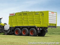 Bereits das Vorgängermodell bot serienmäßig die Möglichkeit, im Bedienterminal unterschiedliche Knickdeichselpositionen für eine automatische Ansteuerung im Lade-, Transport- und Vorgewendemodus zu speichern. Für den neuen CARGOS 9000 ist nun wahlweise zusätzlich eine automatische Knickdeichselregelung verfügbar, die durch die aktive Regelung der Deichsel im Belademodus laut Claas immer für einen ausreichenden Freiraum zwischen Deichsel, Rotor und Pick-up sorgt. So soll stets ein optimaler Gutfluss sichergestellt sein.