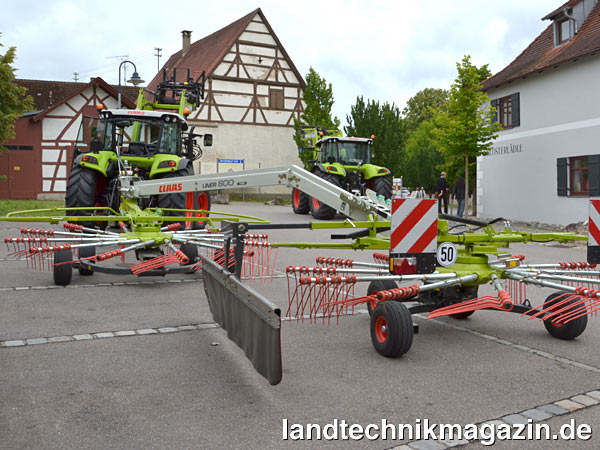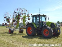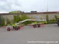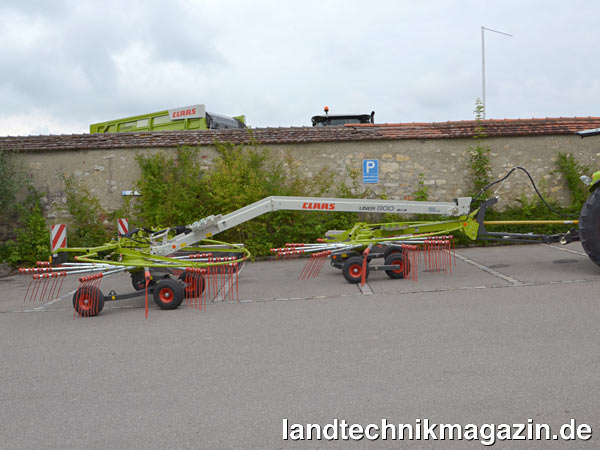 Die Claas Zweikreisel-Seitenschwader LINER 700 mit einer Arbeitsbreite von 3,50 m bis 6,30 m und LINER 800 mit einer Arbeitsbreite von 4,00 m bis 7,50 m haben kein Hauptfahrwerk und bieten neben der einfachen Seitenablage auch die Funktion TWIN für die Zweischwadablage. Die Zinkenarme können nach Unternehmensangaben schnell und einfach abgebaut und in eigens dafür vorgesehenen Transportpositionen am Gerät verstaut werden. Bedient werden die Modelle 700 und 800 über die Steuergeräte des Schleppers. Das Zitronenprofil des LINER 700 und die 20-fache Vielzahnung des LINER 800 verbinden laut Claas die Arme verschleißarm und spielfrei mit der Schwadglocke.