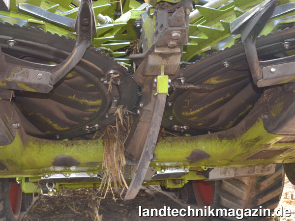 Weiterhin als Option verfügbar ist das integrierte Transportsystem für den ORBIS 900 Maisvorsatz, das bei Aktivierung des Straßenmodus' oder der Schwingungstilgung automatisch ausfährt. Gerade für den deutschen Markt ist diese Option wichtig, da sich durch das Transportsystem, das für die ORBIS 600 und größer erhältlich ist, die Achslast verringert.