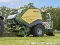 Mit der Quaderballenpresse BiG Pack HDP II 1290 (VC) stellt Krone eine leistungsstärkere Weiterentwicklung mit neuem, schlanken Design vor – Krone betont Pressdichte und hohen Durchsatz. Um beim Press-Start auch bei hoher Pressdichte Probleme zu vermeiden, setzt Krone auf eine komplett überarbeitete hydraulische Anlaufhilfe des 600 kg schweren Schwungrades mit deutlich erhöhtem Drehmoment und höherer Enddrehzahl. Neu für diese Großpackenpresse ist auch das variable Füllsystem (VFS), das durch eine elektronische Steuerung unabhängig von Schwadgröße oder Fahrgeschwindigkeit gleichmäßige und kantige Ballen bewirken soll – das System war bis dato den BiG Pack der fünften Generation vorbehalten. Interessant für all jene, die die Wartung alleine durchführen, ist der neue AutoCheck Wartungsmodus, mit dem dich die Maschine über Drucktaster von mehreren Stellen aus langsam drehen und überprüfen lässt; Taktung von Vorkammer zu Kolben und Kolben zu Knotern kann in einer Selbstdiagnose überprüft werden. Krone unterstreicht außerdem, dass alle eingebauten Sensoren diagnosefähig seien und, wie auch alle Aktoren, über das Terminal getestet werden können. Die BiG Pack HDP II 1290 (VC) ist ISOBUS-fähig und serienmäßig mit modernen Beleuchtungspaketen ausgestattet. Optional stehen unter anderem Feuchtemessung, Ballenwaage, Rückfahrkamera, Siliermitteldosierung und das automatische Ablagesystem BaleCollect zur Verfügung.