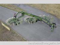 Krone zeigt zwei neue Schwader: den Swadro TS 970 und den Swadro TC 1370. Beim Swadro TS 970 handelt es sich um einen 3-Kreisel-Seitenschwader, der einen Einzelschwad erzeugt und 9,70 m Arbeitsbreite bietet. Die neue Bedienbox enthält eine Kreiselhöhenanzeige, zeigt die aktuelle Rechhöhe an und reagiert laut Krone schnell auf Veränderungen.