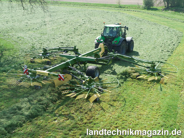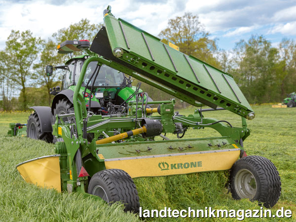 Neben diesen drei Frontmähwerken stellt Krone außerdem ein 4-m-Scheibenmähwerk mit V-Stahlzinkenaufbereiter des Namens EasyCut F 400 CV vor, das wegen seiner innovativen Konzeption mit einer DLG-Silbermedaille prämiert wird.