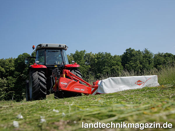 Die neuen Scheibenmäher Kuhn GMD 240, GMD 280 und GMD 310 erhielten im Vergleich zu ihren Vorgängern sowohl einen neuen Anbaurahmen, als auch einen neuen Verbindungsrahmen zum Mähbalken – laut Kuhn soll dadurch die mechanische Festigkeit um über 70 % gesteigert werden. Der Anbaurahmen bietet mehrere Einstellmöglichkeiten und kann nach Herstellerangaben an die jeweilige Reifengröße des Traktors angepasst werden; verschiebbare Anbaugabeln sind als Sonderausrüstung erhältlich. Der Mähbalken aus der Serie 100 mit Anfahrsicherung PROTECTADRIVE erhielt eine neue Befestigung: Er ist nun mit dem Winkelgetriebe und dem hinteren Versteifungsrohr verbunden, um seine Lebensdauer zu verlängern. Um die Konstruktion besser an dichte Futterbestände und hohe Arbeitsgeschwindigkeiten anzupassen, wurde der Tragarm des Schwadtuchs verstärkt und umgestaltet. Die neuen Kuhn GMD 240, 280 und 310 können von der Traktorkabine aus eingeklappt werden, was sich gerade beim Mähen kleiner Parzellen als nicht zu unterschätzender Vorteil erweisen soll.
