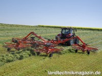Kuhn betont, dass der neue, angebaute Zweikreiselschwader GA 7631 P eine gelungene Kombination aus hoher Flächenleistung und kompakter Bauweise darstelle und für Betriebe entwickelt wurde, die mit einem Einkreiselschwader an ihre Grenzen stoßen. Die hydraulisch verstellbare Arbeitsbreite von bis zu 7,40 m erlaubt flexible Einsätze, während die Schwade zwischen 1,30 und 2,20 m Breite an unterschiedliche Erntesysteme angepasst werden können.