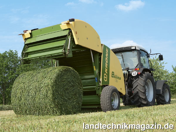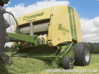 Für den Einsatz in Kurven und Ecken, am Hang und aus breiten Schwaden ist die Bellima F 130 konzipiert. Die 1.800 mm breite Pick-up EasyFlow mit Raffer gehört zur Grundausrüstung einer Bellima F 130. Die Nähe des Raffers zu den vier Zinkenreihen, der Pick-up und der Starterwalze in der Presskammer sollen für einen kontinuierlichen Gutfluss sorgen, auch bei kurzem Futter. Der Raffer erhöht zudem laut Krone das Schluckvermögen der Presse und macht die Maschine noch wirtschaftlicher.