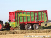 Das Augenmerk lag nach Herstellerangaben auch bei der „Tera“ wieder auf dem Strautmann-typischem geringem Antriebsbedarf des Doppelnutzen-Ladewagens, trotz der hohen Schlagkraft, die nicht nur im Feld, sondern auch auf der Straße überzeugen soll, wo die großen Ladungen, so Strautmann, mit höchster Sicherheit und besten Fahrkomfort transportiert werden. Das hydropneumatische Fahrwerk für ein Gesamtgewicht von 24.000 kg ist bereits bei der Größe 4601 serienmäßig. Genauso wie das Tridem-Fahrwerk des größten Modells Tera-Vitesse CFS 5201.