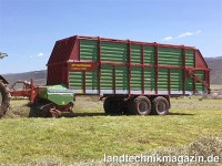Den geschlossenen Aufbau gibt es bei den Ambion Heuladewagen mit 2,42 oder 2,60 m Höhe. Daraus resultieren unterschiedliche DIN-Ladevolumina, die Strautmann mit 39,5 respektive 42,0 m³ beim Ambion 440 und 46,0 beziehungsweise 49,0 m³ beim Ambion 500 angibt. Oben ist der Laderaum mit stabilen Blechprofilen verschlossen. So kann das trockene Material für eine optimale Ausnutzung des Ladevolumens besser verdichtet werden und Futterverluste bei der schnellen Straßenfahrt werden reduziert. Für einen optimalen Korrosionsschutz ist die Plattform verzinkt und zusätzlich mit einem 25 mm starken Holzboden versehen. Der Kratzboden verfügt über vier Rundstahlketten mit nach Herstellerangaben je 13 t Bruchlast.