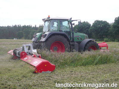 Mit einem gewöhnlichen Mulchgerät können oftmals nicht alle Bereiche der Grünlandfläche erreicht werden. Hohes Gras an Verengungen und Hindernissen...