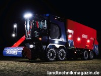 Angetrieben wird die Maschine von einem Motor, der mit einem Niedrigdrehzahlkonzept ausgestattet ist. Die Motorleistung beziffert Siloking (ohne Angabe einer Norm) mit 375/510 kW/PS. Das maximale Drehmoment wird laut Hersteller bereits bei 1.200 U/min erreicht, was zu einem deutlich reduzierten Kraftstoffverbrauch, weniger Lärmentwicklung und geringerem Verschleiß führen soll – ein klarer Vorteil im täglichen Einsatz auf dem Betrieb. Das neu entwickelte 4-Achs-Heavy-Duty-Fahrwerk sorgt laut Siloking für maximale Stabilität und Wendigkeit, auch unter schwierigsten Wegeverhältnissen. Alle vier Achsen sind gelenkt, drei davon angetrieben. Mit einem technisch zulässigen Gesamtgewicht von 50 t soll der System 2000+ auch höchste Manövrierfähigkeit im Stall und auf dem Hof sowie bei längeren Transportwegen bieten.