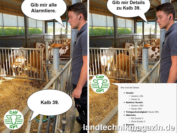 Die Betreuung von Kälbern ist eine wichtige und leider auch aufwändige Arbeit. Insbesondere das Abrufen der von Sensoren und Tränkeautomaten erfassten Daten ist oft nur sehr umständlich möglich. Das neue CalfGPT von Förster-Technik ermöglicht erstmals ein sprachgesteuertes, KI-unterstütztes Datenmanagement in der Kälberbetreuung. CalfGPT nutzt das betriebseigene WLAN, die Sprachsteuerung erfolgt über In-Ear-Kopfhörer, so dass beide Hände für die Arbeit mit dem oder am Tier frei bleiben. CalfGPT erleichtert damit das Kälbermanagement deutlich.