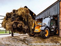Aber was ist nun das Besondere am neuen JCB DualTech VT Getriebe? Bei niedrigen Geschwindigkeiten, also beim klassischen Einsatz eines Teleskopladers sind hydrostatische Getriebe durch ihre Reaktionsfreudigkeit und feine Drehzahlregelung klar im Vorteil, verbrauchen aber wegen ihres schlechteren Wirkungsgrades bei Transportfahrten zu viel Kraftstoff im Vergleich zu Lastschaltgetrieben. Das neue JCB DualTech VT Getriebe bietet eine Lösung für dieses Dilemma, indem im 1. Gang (bis 19 km/h) das Hydrostatgetriebe-Modul zum Einsatz kommt, während in den Gängen 2 bis 4 (bis zu 40 km/h) der mechanische Direktantrieb verwendet wird. Für die Bedienung ist dieses Wissen allerdings nicht notwendig, da die AGRI Pro Teleskoplader über eine automatische Gangschaltung von 0 bis 40 km/h verfügen. Der Lastschaltantrieb bietet nach Herstellerangaben übrigens nicht nur hohe Fahrgeschwindigkeiten, sondern sorgt außerdem auch für eine bessere Beschleunigung auf steilen Anstiegen.