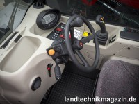 Wie eingangs erwähnt, befinden sich die signifikantesten Änderungen der MF 9000 allerdings im Kabineninneren (die übrigens nur 75 dbA laut sein soll). Alle Modelle wurden jetzt mit dem Multifunktions-Joystick ausgestattet, mit dem Teleskoparm sowie Anbaugeräte bedient werden. Das Armaturenbrett beinhaltet nun einen Bildschirm, der Auskunft über den maximalen Hydraulikfluss, die Arbeitsstunden, die Fahrzeuggeschwindigkeit, die Motordrehzahl und den Neigungswinkel des Auslegers gibt; auch die Arbeitshydraulik wird hier eingestellt. Auch das neue Smart-Handling-System (SHS), mit dem sich der maximal verfügbare Hydraulikfluss begrenzen lässt, kommt nun in allen Modellen zum Einsatz.