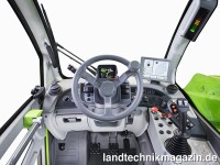 Als Highlight der neuen Turbofarmer-Generation nennt Merlo die komplett nach Standards der Automobil-Industrie überarbeitete Kabine. Mit einem Innenmaß von 1.010 mm ist sie laut Merlo die breiteste in diesem Teleskoplader-Segment. Viel Platz, die ergonomische Anordnung des Innenlebens oder die leistungsfähige Klimaanlage machen, so Merlo, den Arbeitsalltag angenehmer und unterstützen eine hohe Arbeitsqualität. Ein im Vergleich zu den Vorgänger-Modellen im Inneren um drei Dezibel verminderter Geräuschpegel soll hierbei seinen Beitrag leisten. Noch mehr Komfort gibt es auch bei den neuen Turbofarmern in CS-Version (cab suspension) mit schwingungsgedämpfter Kabine. Zudem soll auch in der neuen Turbofarmer-Generation die dynamische Lastkontrolle MCDC für hohe Sicherheit sorgen. Auch das Gesamtdesign der Maschinen zeigt sich, so Merlo, in junger Optik.