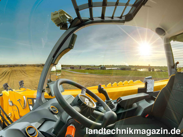 In den neuen JCB Teleskopladern der Serie III findet sich der gewohnte elektrohydraulische Joystick zur Steuerung von Ausleger und Anbaugerät, Vorwärts-/Rückwärtsschaltung sowie Zusatzhydraulikversorgung an das Auslegerende. Der Joystick befindet sich entweder rechts vom Fahrersitz oder am luftgefederten Sitz selbst. Das frühere Kippschalterfeld ist robusten Schaltergruppen mit Gummimembran gewichen. Der Großteil ist entlang des Joysticks angeordnet, ebenso wie ein Drehschalter für die Menünavigation und Funktionswahl in dem neuen tabletähnlichen Instrumentendisplay, das vor der rechten Kabinensäule „schwebt“.