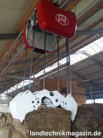 Die Aufhängung des neuen Greifers ist flexibler als die des Vorgängertyps. Dadurch kann der Greifer die Blöcke oder Ballen besser und präziser fassen. Der neue Futtergreifer wendet keine Hydraulik an und arbeitet leiser und schneller als sein Vorgänger. Auch das Design des Futtergreifers wurde angepasst, so dass auch die Ecken des Futtervorratsbereichs ausgenutzt werden können. Je nach Größe des Futtervorratsbereichs kann nach Unternehmensangaben bis zu 12 Prozent mehr nutzbarer Platz geschaffen werden.
