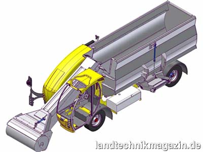 Als auffälligstes Merkmal der neuen selbstfahrenden Futtermischwagen nennt Sgariboldi das klare und moderne Design: Durch eine variierte Rahmenbauweise entstand in der neuen 5000er- und 6000er-Serie eine weitaus geräumigere Fahrerkabine mit verbesserter Sicht nach außen.