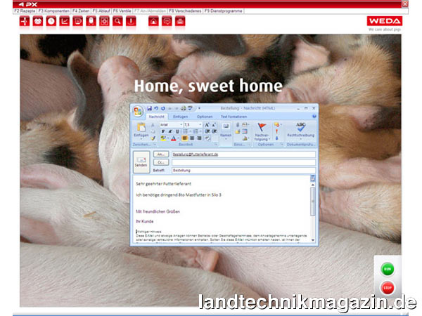 Mit dem Instrument „Reziproke Fernbedienung“ kann der Benutzer von seinem Fütterungsrechner auf einen PC oder anderen Computer wie Lüftungsrechner oder Klimacontroller zugreifen. Bisher war es nur möglich, vom PC auf den Fütterungsrechner zuzugreifen. Die Bedienung von E-Mail-Programmen oder der Zugriff auf das Internet erfolgt jetzt problemlos und schnell. In Anlagen mit hohem Hygienestandard bedeutet dies einen erheblichen Zeitgewinn, fällt doch allein das häufig umständliche Prozedere des Einduschens weg. Darüber hinaus besteht die Möglichkeit, Stallungen, die weit außerhalb der zentralen Gebäude liegen, fernzubedienen.