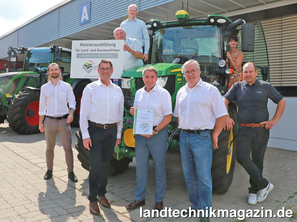 Die offizielle Urkunde sowie ein Publikationsschild überreichten der Bundesinnungsmeister für Land- und Baumaschinenmechatroniker, Norbert Stenglein sowie der Geschäftsführer Landtechnik im LandBauTechnik Bundesverband e.V., Ulrich Beckschulte.