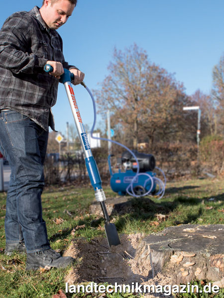 Viele Aushub-, Abbruch- und auch zahlreiche Renovierungs-Arbeiten lassen sich nach Herstellerangaben mit dem scheppach Aero2Spade schnell und problemlos unterstützen. Mit einem Betriebsdruck von 6,3 bar sollen sich mit dem geschmiedeten Spatenblatt Wurzelwerk und steiniger Untergrund mühelos aufstemmen und abtragen lassen. Dank seiner kompakten Bauweise lassen sich auch schwer zugängliche Bereiche bearbeiten und mit dem Wechselsystem können die im Lieferumfang enthaltenen Werkzeuge wie ein Spitz-, Flach- und Breitmeißel oder ein Schaber einfach und schnell gewechselt werden.