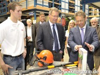 Zur Begrüßung hatten sich die 44 Auszubildenden extra für den Ministerpräsidenten stilvoll aufgestellt. Der Ministerpräsident nutzte die Gelegenheit zum direkten Gespräch. Dabei stellte Fricke-Geschäftsführer Hans-Peter Fricke heraus, dass sein Unternehmen allein in diesem Jahrzehnt bereits mehr als einhundert junge Menschen ausgebildet und anschließend übernommen habe. Damit biete das Unternehmen gute Zukunftsperspektiven: „Wir bilden grundsätzlich für den eigenen Bedarf aus, weil wir auf Grund unseres Wachstums einen hohen Bedarf an gutem und qualifizierten Personal haben. Diese Strategie werden wir auch künftig weiter verfolgen.“