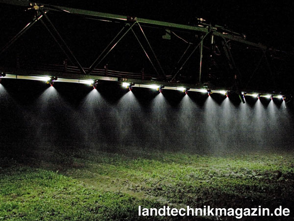 Beide Hersteller nutzen die hohe Lichtintensität von LEDs, um in den Abend- und Nachtstunden die Spritzfächer der Düsen am Spritzgestänge gut sichtbar zu machen. Düsen, die nicht einwandfrei funktionieren und keinen oder nur einen unvollständigen Spritzfächer ausbilden, lassen sich – soweit während der Spritzung einsehbar – auf diese Weise erkennen und können gereinigt oder ausgetauscht werden. Ein weiterer Vorteil besteht darin, dass der zu behandelnde Pflanzenbestand sich auch über die Arbeitsbreite des Gerätes hinaus dem Blickfeld des Fahrers erschließt und auf Hindernisse rechtzeitig reagiert werden kann. Weitere Details hierzu siehe Artikel „Dammann präsentiert innovative Spritzkegeldirektbeleuchtung HD-Nightlux“.