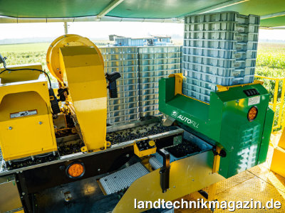 Bei den Ring- oder Überladeelevatoren in Kartoffelerntemaschinen wird die Umlaufgeschwindigkeit zumeist einmal manuell auf die maximal erforderliche Förderleistung während des Rodens eines Schlages eingestellt, um Verstopfungen des Hochförderelementes zu vermeiden. Diese ausschließlich an der Funktionssicherheit orientierte Einstellung ist bei wechselnden Erntegutdurchsätzen häufig zu hoch und beinhaltet ein verstärktes Beschädigungsrisiko der Kartoffeln beim Beschicken des Elevators sowie der Übergabe der Knollen auf das Transportfahrzeug. Durch die sensorgesteuerte Füllstandsoptimierung „Speedtronic“ wird die Umlaufgeschwindigkeit des Elevators automatisch so variiert, dass immer ein größtmöglicher Befüllungsgrad der Förderelemente sichergestellt ist. Dies reduziert nachhaltig die mechanischen Belastungen der Kartoffeln an den Übergabepunkten und entlastet den Fahrer zusätzlich von zeitaufwendigen manuellen Steuerungsfunktionen.