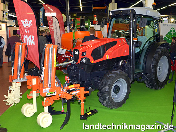 Neben den prämierten Produkten wurden auf der SIVAL 2018 selbstredend viele weitere Produkte gezeigt – mit einem deutlichen Schwerpunkt auf dem ökologischen Pflanzenbau. So präsentierten sich neben den großen Marken Unternehmen mit sehr spezieller Ausrichtung, wie beispielsweise die Firma NAÏO TECHNOLOGIES (www.naio-technolgies.com), die Roboter wie DINO entwickeln, die autonom die verschiedensten Pflegemaßnahmen durchführen. Das Unternehmen SABI AGRI (www.sabi-agri.com) zeigte mit ALPO einen elektrischen Geräteträger und JAULENT (www.jaulent.com) verschiedene Maschinen für das Recycling von Agrarfolien und alten Bewässerungsschläuchen. Als Kontrast zu diesen hochkomplexen Maschinen präsentierten sich auf einem Stand Races mulassieres du Poitou (www.racesmulassieresdupoitou.com) mit einem Pferd, Equidés & Formation (www.equides-formation.fr) mit einem Maultier und Vitimeca (www.vitimeca.com) mit verschiedenen Bodenbearbeitungsgeräten, die von Tieren gezogen werden können. Für den Einsatz von Zugtieren werden spezielle Rassen benötigt und die Tiere müssen professionell geschult werden. Gerade bei empfindlichen Böden und bei der Forstarbeit stellen Zugtiere durchaus eine Alternative dar, da die Tiere naturgemäß weit weniger Bodendruck als Maschinen verursachen.