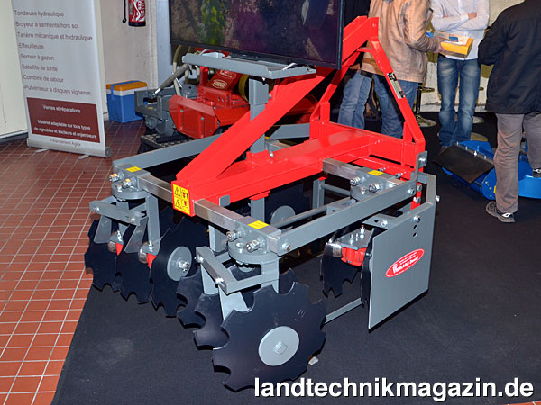 Vedelago Daniel (www.etsvedelagodaniel.fr) produziert ein breites Maschinen-Sortiment für den Weinbau und zeigt Scheibeneggen, deren Arbeitsbreite sich manuell einstellen lässt, die mit verschiedenen Scheiben ausgerüstet werden können und deren Scheibenanzahl auf die Anforderungen abgestimmt werden kann.