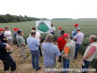 Die Praxistage begannen immer mit einem Ackerbauvortrag. Teilweise blickte Michael Horsch selbst auf die Entstehungsgeschichte der Horsch Maschinen GmbH zurück und gestattete den Zuhörern auch einen Einblick in seine Zukunftsvisionen und ganz konkrete Themen, die Horsch in den nächsten Jahren angehen wird. Nach dem Vortrag ging es dann auf die angrenzenden Felder zur Maschinenvorführung. Dort präsentierte sich den interessierten Landwirten eine große Bandbreite an Horsch Maschinen für Bodenbearbeitung und Aussaat – immer angepasst auf die regionalen Gegebenheiten, Betriebsgrößen und klimatischen Bedingungen der Gäste. Diese maximale Individualität und der absolute Kundenfokus sind seit jeher absolute Kernkompetenzen bei Horsch. Anschließend an die Maschinenvorführung folgte eine Besichtigung der Versuchsfelder im Demogarten. Auch hier war der Anspruch, für jede Region interessante Fragestellungen zu behandeln. Im Mais waren Versuche zu den Themen Saatbettbereitung, Reihenabstände, Schardruck und Saatguteinbettung von besonderem Interesse. Die Gäste hatten zusätzlich die Gelegenheit, ein sehr neues und spannendes Thema, die Einzelkornsaat von Weizen, zu studieren. Hier lag der Fokus auf Saatstärken, Dünger- und Wachstumsreglerstrategien. Die Nährstoffversorgung junger Pflanzen ist immer eine große Herausforderung, auch hier konnten sich die Kunden einen Überblick über Düngerablagemöglichkeiten bei der Saat verschaffen. Der Feldversuch zum Crop Relay, einer Technik für den Anbau von zwei Kulturen gleichzeitig, führte in vielen Gruppen zu interessanten Diskussionen über die Zukunft im Ackerbau.