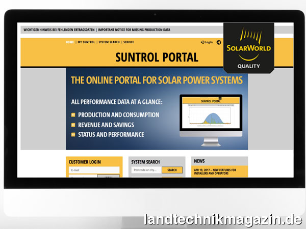 Nach der zweiten Insolvenz von Solarworld lief Suntrol bereits seit Dezember 2017 zur Sicherung aller Daten auf den Servern von Solytic. Aktuell bildet das Portal für über 23.000 Solaranlagen, mit einer Gesamtkapazität von knapp 330 Megawatt, alle wichtigen Leistungs- und Ertragsdaten ab. Neben allgemeinen Informationen zur Ertragshistorie zeigt es den Kunden an, wie viel CO2 sie dank ihrer Photovoltaikanlage einsparen und informiert sie über ihren Eigenverbrauch.