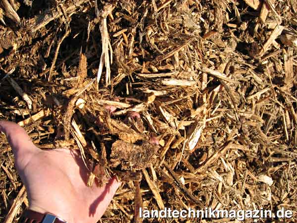 Im zweiten Schritt der Kette erfolgt die Zerkleinerung mittels AZ 660 und der neu entwickelten Zweigangschaltung Twin-Gear bei sehr niedriger Rotordrehzahl und entsprechendem Siebkorb. Die bewährten Vario-Cut-Schläger wurden der Hackgutqualität G 100 angepasst. Im Ergebnis wird jetzt, so Jenz, bereits im zweiten Arbeitsgang die gewünschte Größe G 100 - P 63 erreicht. Dabei wird der noch anhaftende mineralische Anteil mitzerkleinert, so dass dieser optisch nicht mehr erkennbar sein soll. Der Anteil dieser Fraktion im Endprodukt beträgt laut Hersteller in der Regel weniger als 5 %. Auf den Einsatz einer Siebanlage kann deshalb laut Jenz in der Regel verzichtet werden und das Endprodukt kann ohne weiteres als Beimischung dem üblichen Waldhackschnitzel mit zugeführt werden. Die Praxis zeigt, so der Hersteller, dass diese Mischung aufgrund des höheren Heizwertes beim Wurzelholz von den Biomassenheizwerken gerne genommen wird.