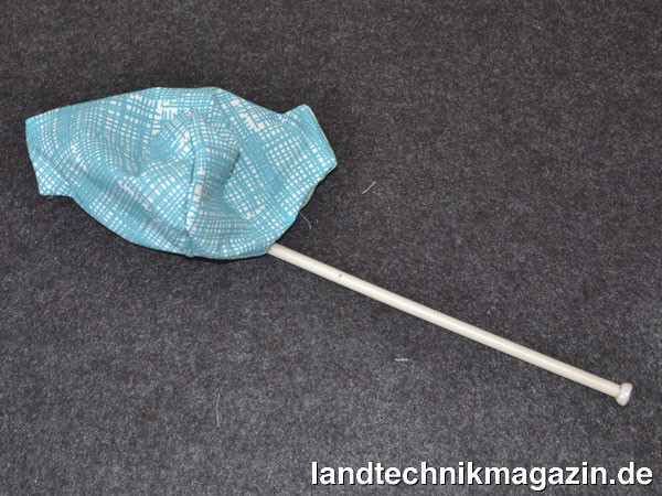 Maske wenden, Ecken mit Stricknadel ausformen, Nähte bügeln.