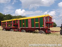Für den witterungsunabhängigen Transport beispielsweise von Getreide gibt es den SZK 18-H auch mit aufrollbarer Abdeckplane und Mühlendreieck sowie stabilem Laufsteg. Weitere optionale Ausstattungsdetails sind Überladebleche und eine hydraulische Bordwandentriegelung, die bei Anlieferung in vielen Zuckerfabriken erforderlich ist.