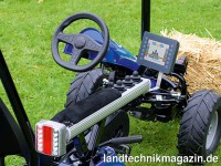 Das Agritechnica-Exponat ist ein voll funktionsfähiger ISOBUS-Dinocar-„Traktor“. Der Frontlader ist an der Original-Frontsteckdose angeschlossen, das Anbaugerät an der Hecksteckdose. Die drei eigenständigen ISOBUS-Systeme, werden über ein beliebiges ISOBUS-Terminal bedient. Alles ist mit Sensorik und Aktorik an die open:control-Steuergeräte angeschlossen. Sie sind über das in die Armlehne integrierte ISOBUS-AUX mit Joysticks steuerbar – selbst die Spuranreißer mit Wendeautomatik des Anbaugerätes.