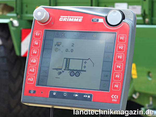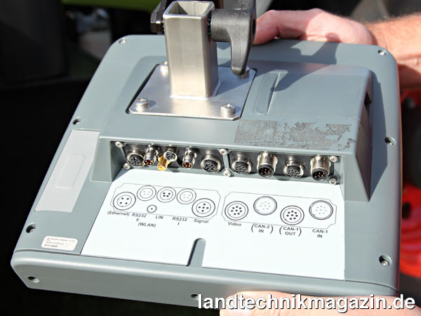Das Gehäuse des CCI-Terminals besteht aus robustem Kunststoff im ergonomischen Design mit herstellerindividueller Folie auf der Gerätefront. Eingebaut ist ein hochwertiges lichtstarkes 8,4" Display mit 750 cd/m² Leuchtdichte und transflektivem Anteil, dass einen Teil des einfallenden Lichtes hinter dem LCD spiegelt und so die Lichtabstrahlung des Displays verstärkt. Um den Fahrer bei Dämmerung und in der Nacht nicht durch ein zu helles Display zu blenden, ist auf der Gerätefront ein Umgebungslichtsensor angebracht, der automatisch die optimale Displaybeleuchtung wählt. Das ermüdungsfreie Arbeiten während der Dunkelheit wird durch eine Beleuchtung der Tasten unterstützt, die ebenfalls mit dem Lichtsensor gekoppelt ist. Rechts und links neben dem Display sind je sechs Softkey-Tasten (F1-F12) angeordnet, die mit den Bedienfunktionen der angehängten Maschinen belegt werden. Mit einer rückseitig angebrachten großflächigen Taste lassen sich die Funktionsbelegungen der rechten und linken Softkey-Tasten spiegeln, um die Einhandbedienung der Maschinenfunktionen zu unterstützen. Zur intuitiven Menüführung und komfortablen Eingabe von Werten und Texten ist das Display mit einer hochwertigen Touchfolie versehen und zur direkten schnellen Eingabe und Verstellung von Sollwerten ist ein Inkrementalgeber mit Bestätigungsfunktion ergonomisch in das Gehäuse eingelassen.