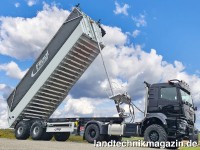 Die Länge der Aluminium-Kastenmulde des ZHKA 350 gibt Fliegl mit 9.300 mm an. Durch ihre konische, hinten breitere Form sollen beim Abladen auch feuchte Materialen wie Mist und Silage problemlos abrutschen. Für eine vielseitige Verwendbarkeit des neuen Sattel-Muldenkippers für unterschiedliche Transportgüter, einschließlich Getreide und sogar Raps sowie feuchter Ladungen wie Mist, stattet Fliegl dessen Rückwand mit einer Gummidichtung, Spannschlössern und einem Kornschieber mit den Maßen 400 x 400 mm aus. Laut Hersteller ist die Mulde bei geschlossener Rückwand komplett dicht, so dass eine Flüssigkeit entweichen kann. Fliegl weist darüber hinaus darauf hin, dass die Pendelrückwand mit Doppelgelenkscharnier und zweifacher Hakenverriegelung ausgestattet ist, die einen seitlichen Ausgleich von bis zu 300 mm und ein schnelles Abladen ermöglicht.