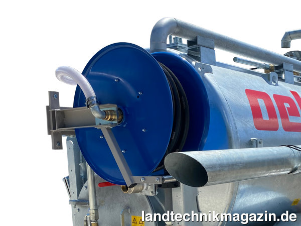 Bei der Art der Wasserverteilung besteht die Wahl zwischen einer Schlauchhaspel und einem Hochverteiler. Die Schlauchrolle verfügt laut Oehler über einen Schlauch mit 30 m Länge und eignet sich somit sehr gut zur punktuellen Bewässern. Der Hochverteiler ist 360° drehbar und kann das Wasser über eine größere Fläche sowie eine weitere Reichweite verteilen.