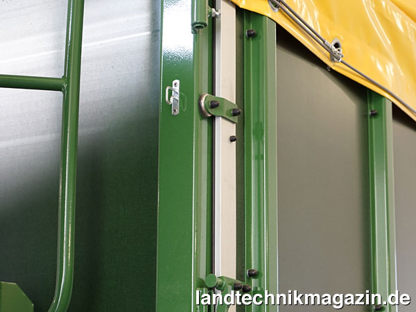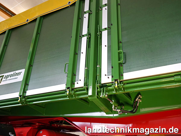 Nachdem es am Markt bereits eine Lösung zur hydraulischen Fernentriegelung gibt, hat die Firma Kröger nun eine (zum Patent angemeldete) hydraulisch angesteuerte Fernent- und verriegelung der Seitenbordwände entwickelt. Mit Hilfe des neuen Smart-Lock-Systems kann nunmehr der vollständige Entladevorgang vom Traktor aus hydraulisch gesteuert werden. Ein manueller Eingriff vom Fahrer ist nicht mehr erforderlich.