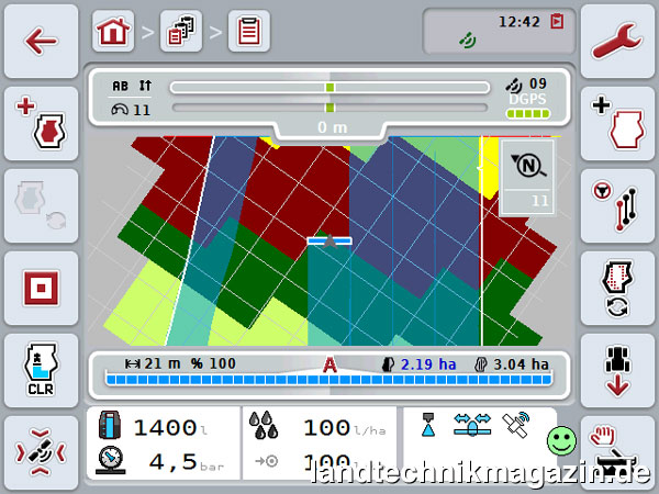 Neben dem neuen CCI 1200 Terminal haben die Entwickler des CCI auch eine neue Software für die bekannten CCI 50, CCI 100 und CCI 200 Terminals erstellt. Die Apps CCI.Control, CCI.Command und CCI.GPS sind laut CCI grundlegend überarbeitet. Die verbesserte Integration von CCI.Control und CCI.Command soll einen uneingeschränkten Datenaustausch innerhalb des Terminals ermöglichen. Bislang musste für den parallelen Einsatz der automatischen Teilbreitenschaltung und der variablen Ausbringung mittels Applikationskarten zwei getrennte Kartenansichten genutzt werden. Die neue Software zeigt die Applikationskarte direkt unter der Bedeckungskarte des Section Control. Kunden die bereits mehrere hundert Felder mit Feldgrenzen, Vorgewenden und Spuren in CCI.Command gespeichert haben, erhalten eine zusätzliche Exportmöglichkeit. Per ISO-XML können diese Daten für die Verwendung in Ackerschlagkarteien aus dem Terminal exportiert werden. Weitere Verbesserungen hat laut CCI die Benutzeroberfläche erhalten. Wichtige Aufgaben wie zum Beispiel der Start eines Auftrags sind mit weniger Klicks erreichbar. Die große Kartenansicht aus CCI.Command steht auch den Kunden zur Verfügung, die mit Aufträgen in CCI.Control arbeiten. Ein Wechsel zwischen CCI.Control und CCI.Command während der Arbeit entfällt. Die Einstellung der korrekten Verzugszeiten für die automatische Teilbreitenschaltung erleichtert laut CCI eine neue Funktion. Es genügt die Eingabe der Länge einer Lücke oder Überlappung und der gefahrenen Geschwindigkeit. Das Terminal errechnet die korrekte Verzugszeit.