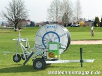 Je nach Ausführung wiegt die schlanke Beregnungsmaschine zwischen 512 und 537 kg (ohne Wasser). Die Spurbreite des Radstativs kann manuell eingestellt werden. Ist die Haspel voll aufgerollt, schaltet das System automatisch ab. Auch die Geschwindigkeitsregelung und der Lagenausgleich erfolgen automatisch. Ist die Arbeit getan, hebt das Fahrgestell mit der Rohrhaspel das Radstativ mechanisch an und ist für den Weitertransport fertig.