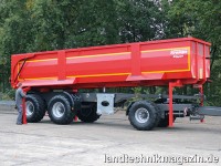 Für den Transport von festen Gütern ist eine 9 m lange Mulde als Wannen- oder Zweiseiten-Kipper verfügbar. Mit 80 cm Silageaufsätzen lässt sich laut Krampe ein maximales Transportvolumen von 47 m³ realisieren. Die technische Nutzlast gibt Krampe für diese Kombination mit 28 t an. Für die Straße ist laut Krampe eine Zulassung mit einem zulässigen Gesamtgewicht von 34 t bei 40 km/h oder mit 32 t bei 60 km/h möglich.
